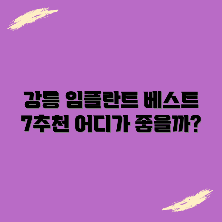 임플란트를 고민하는 분들이라면 정말 많은 고민을 하셨을 것 같아요. 어떤 병원에서 치료받아야 할지, 가격은 얼마나 되는지, 후기는 어떤지 등 다양한 질문이 떠오르죠. 그래서 오늘은 강릉시 임플란트 치과 BEST 7를 가격 비교를 통해 알아보려 해요!