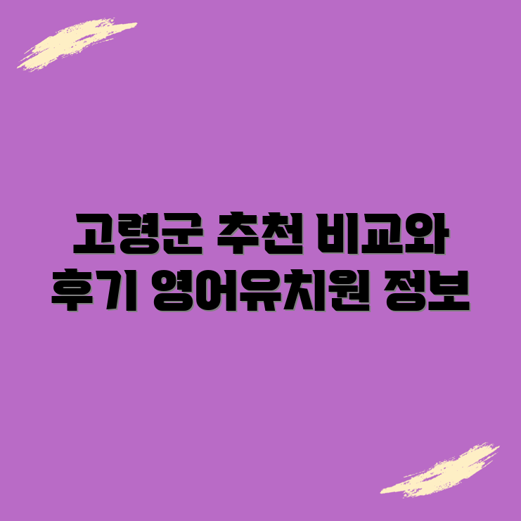 💡 고령군 영어유치원의 숨겨진 매력과 후기를 알아보세요! 💡